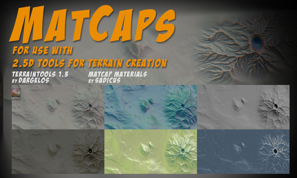 ZBrush MatCap materials that work great with the 2.5D tools for Terrain creation (by dargelos)